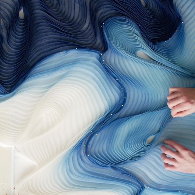 Ce prix prestigieux vient saluer son engagement innovant et responsable dans les Métiers d’Art, et récompense son travail pionnier alliant tradition textile et biodesign pour une création durable.