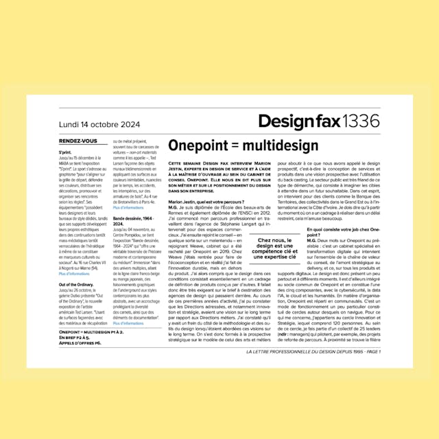 Interview de Marion Jestin, Design Leader chez One Point, dans Design Fax 1336